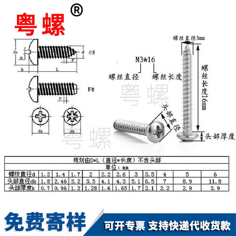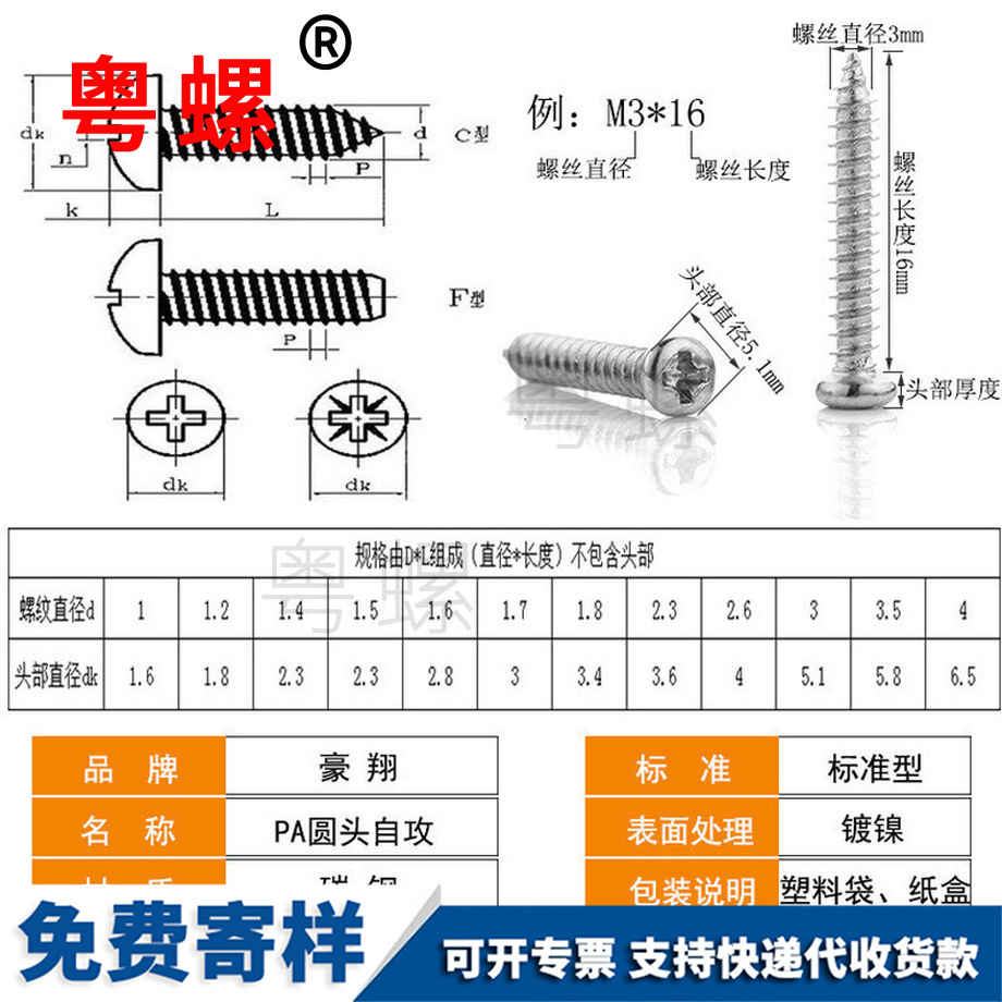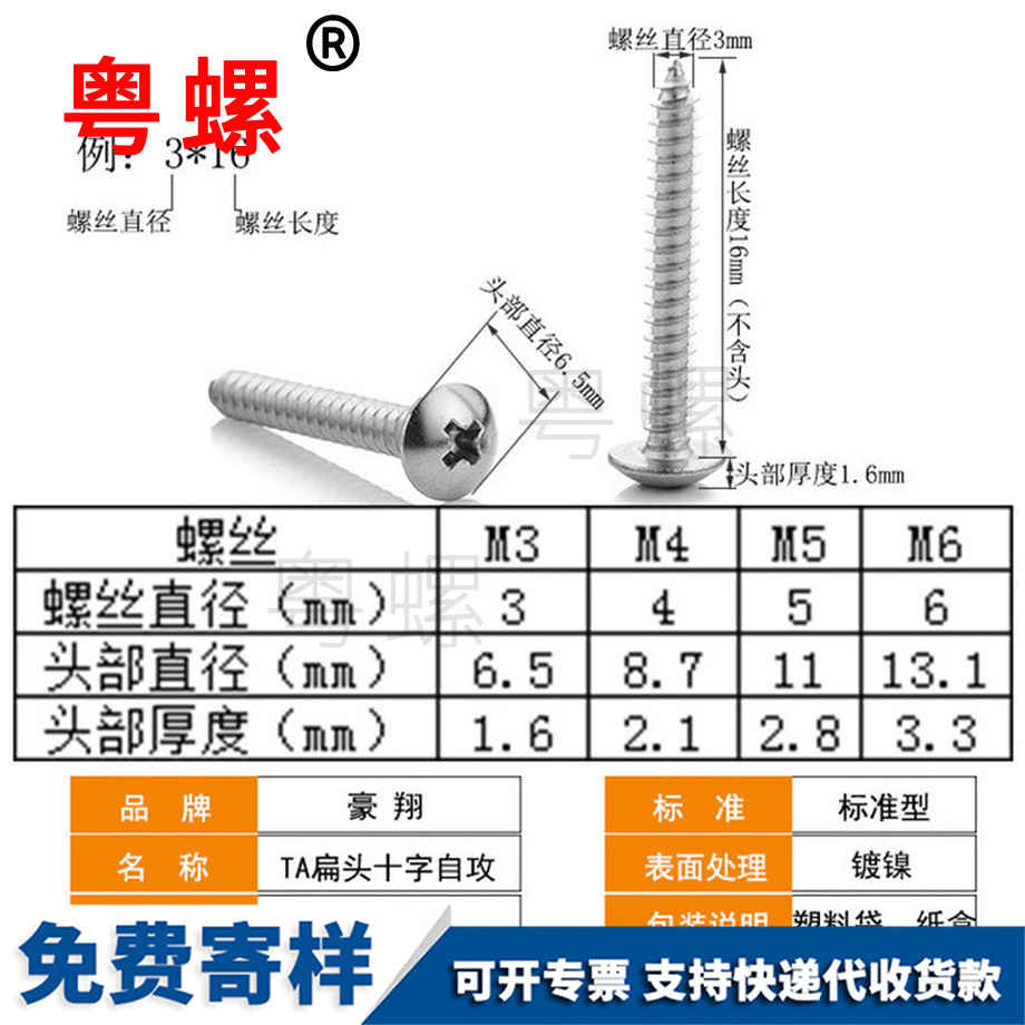 粵螺定制TA鍍鎳 十字槽大扁頭自攻 螺絲釘 傘頭蘑菇頭自攻釘 M4