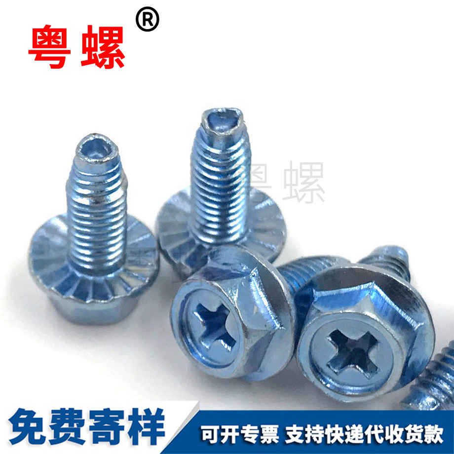 粵螺定做十字盤頭帶墊螺絲 鍍鋅 圓頭帶介 電子螺絲釘 M5
