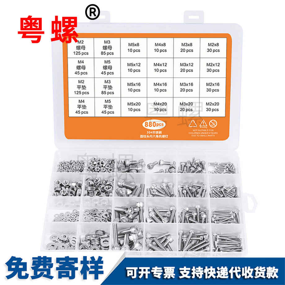 粵螺定做304不銹鋼 圓柱頭內(nèi)六角 盒裝螺絲 杯頭內(nèi)六角套裝螺絲 M5
