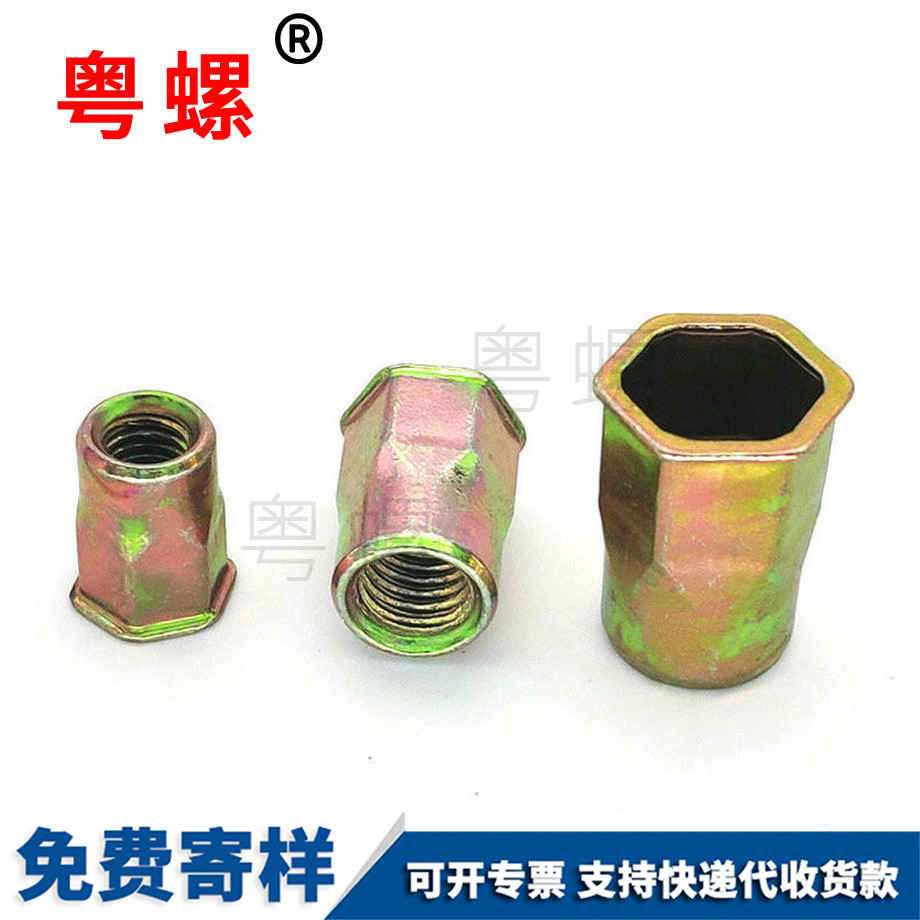 粵螺加工小沉頭 外六角拉鉚螺母 鐵鍍彩鋅拉帽 沉頭拉鉚螺母 M4