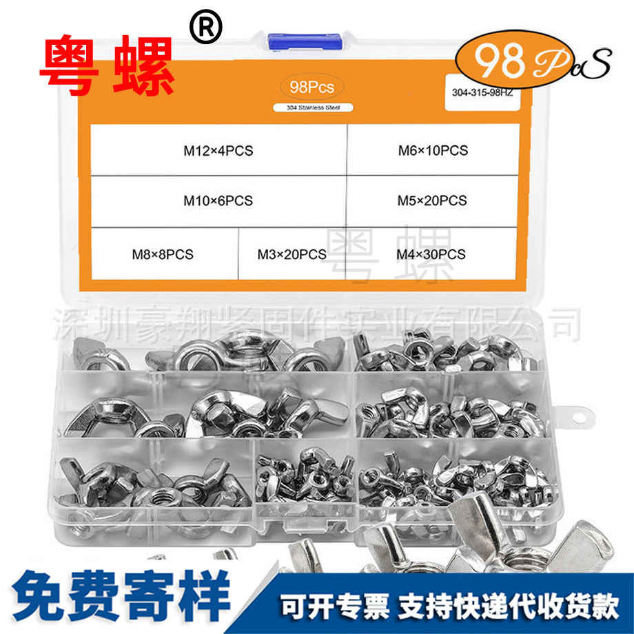 加工蝶形螺母 蝶母手?jǐn)Q螺母 螺帽盒裝螺絲 套裝元寶羊角螺帽304 M4