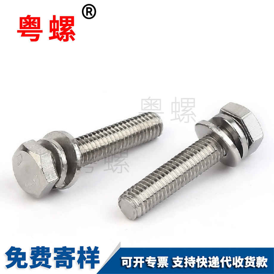 粵螺批發(fā)HC圓柱頭內(nèi)六角三組合元杯機釘 平墊彈墊三組合螺絲 M12 M10 M8