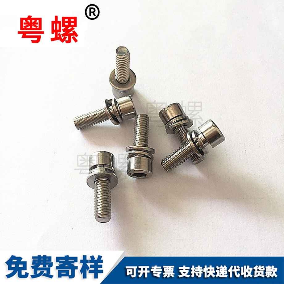 定做304不銹鋼 DIN912 圓柱頭三組合螺釘 螺絲 螺栓和平彈墊