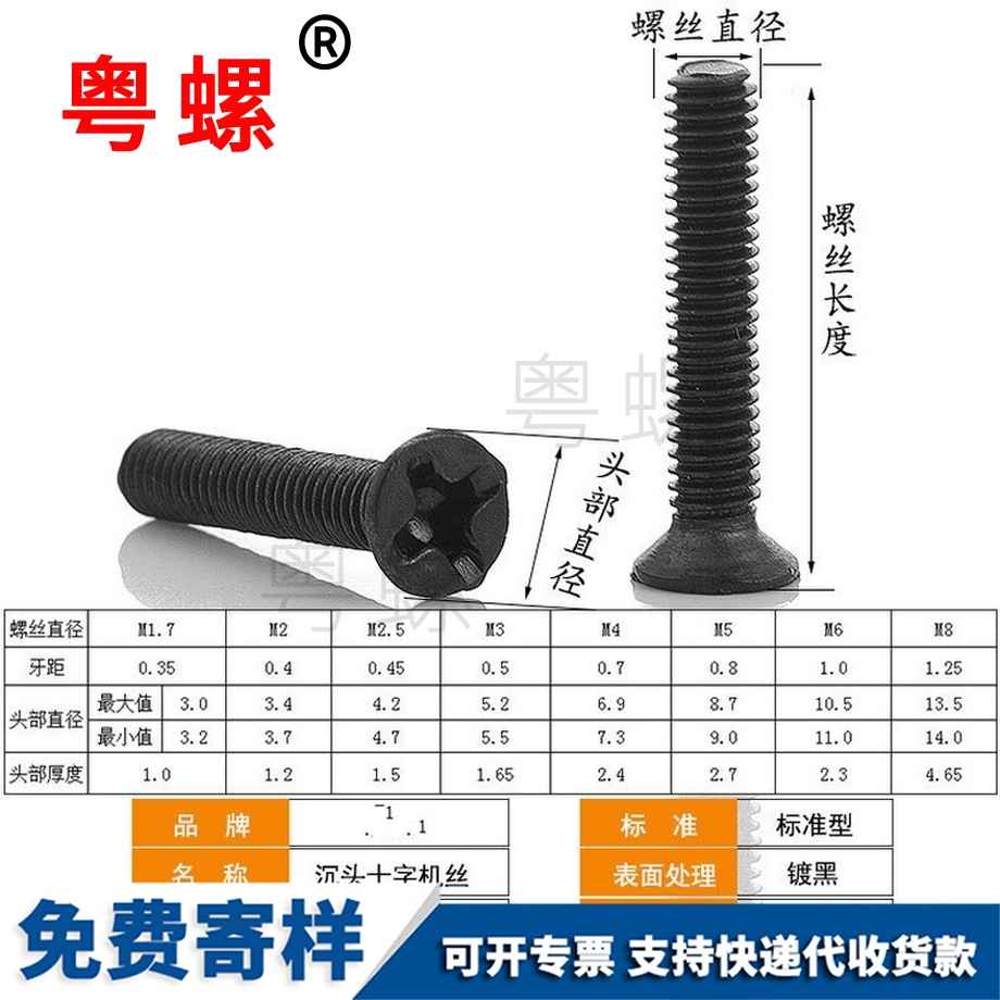 粵螺加工鐵鍍黑 十字螺絲 沉頭螺絲 平頭螺絲釘 機(jī)牙螺絲